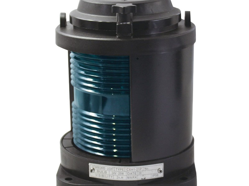 Luz CXH1-21 verde estribor 2 m.n 112.5°. Nombre del producto : Hongyi CXH1-21P Luz De Navegacion De Costado 112.5° Descripción :Serie de navegación de nivel único de estribor de la serie 55 Señales de luz de navegación para barcos de longitud superior a 12 m (<50 m) Color : Verde Amplitud del Arco :112.5⁰ Visibilidad : 2 m.n Calificación IPIP 56 Aprobaciones CCS |