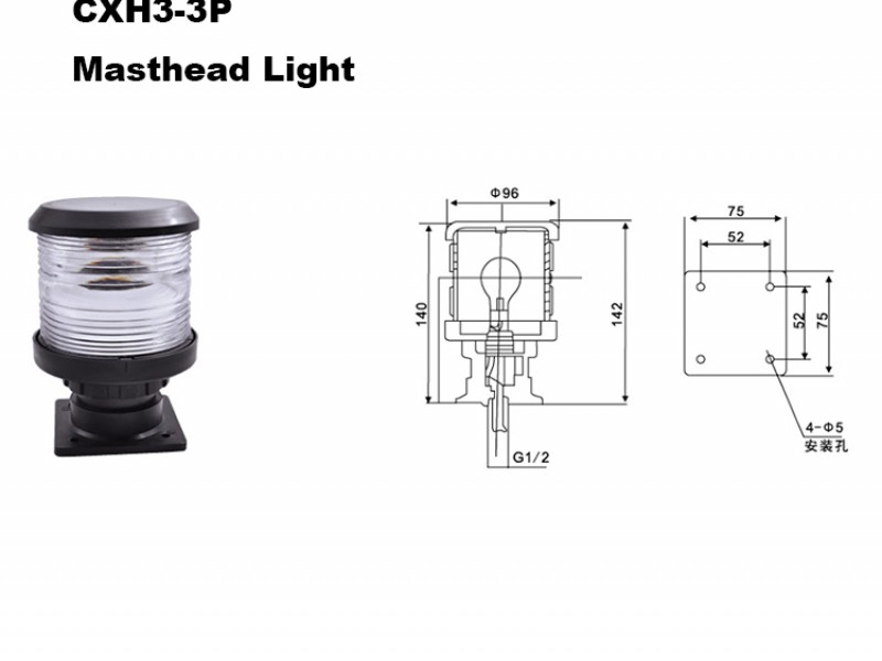 CXH 4-3P Lugar de origen: Shanghai, China Nombre de la marca: Hongyi Electric Equipment Parte:Luz de navegacion marina Nombre del producto:Luz de navegación de 24 V para embarcaciones/yate < 12 mts eslora Visibilidad: 2 n.m Arco de nivel: 360 ° Soporte de lámpara: B15d Potencia de la bombilla: 25W Clase de protección: IP56 Diámetro exterior del cable (mm): 10-12 Color: transparente 360 ° tope Peso: 0.48kg Linea CHX - 3P Aplicado a barcos eslora menores a 12 mts para navegación nocturna aprobado por CCs y EC certificación , conforme a normas internacionales de regulación en prevención de colisiones en el mar Voltaje 12 V 24 V Poder 15 w 15 w Intensidad Lumínica 30 cd 40 cd Soporte de Lampara Bay 15 d Bay 15 d Peso Unitario 0,53 kgs |