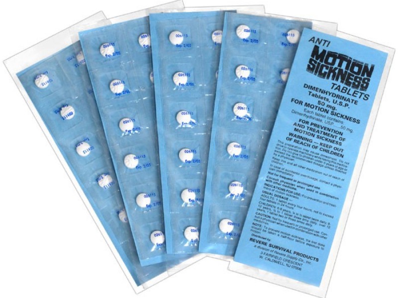 Caja de 60o unidades de pastillas antimareos, indicadas para pack de sobreviviencia SOLAS , incluida en pack A o Pack B, como elementos de uso ante activacion de balsa salvavidas, con fecha de elaboracion indicada en la tira de 12 unidades. Cada comprimido contiene: Dimenhidrinato 100 mg. Excipientes c.s. Valido solo para talleres de inspeccion, armadores o personal que maneja certificacion de balsas salvavidas.
